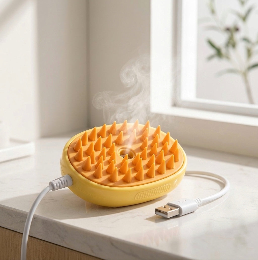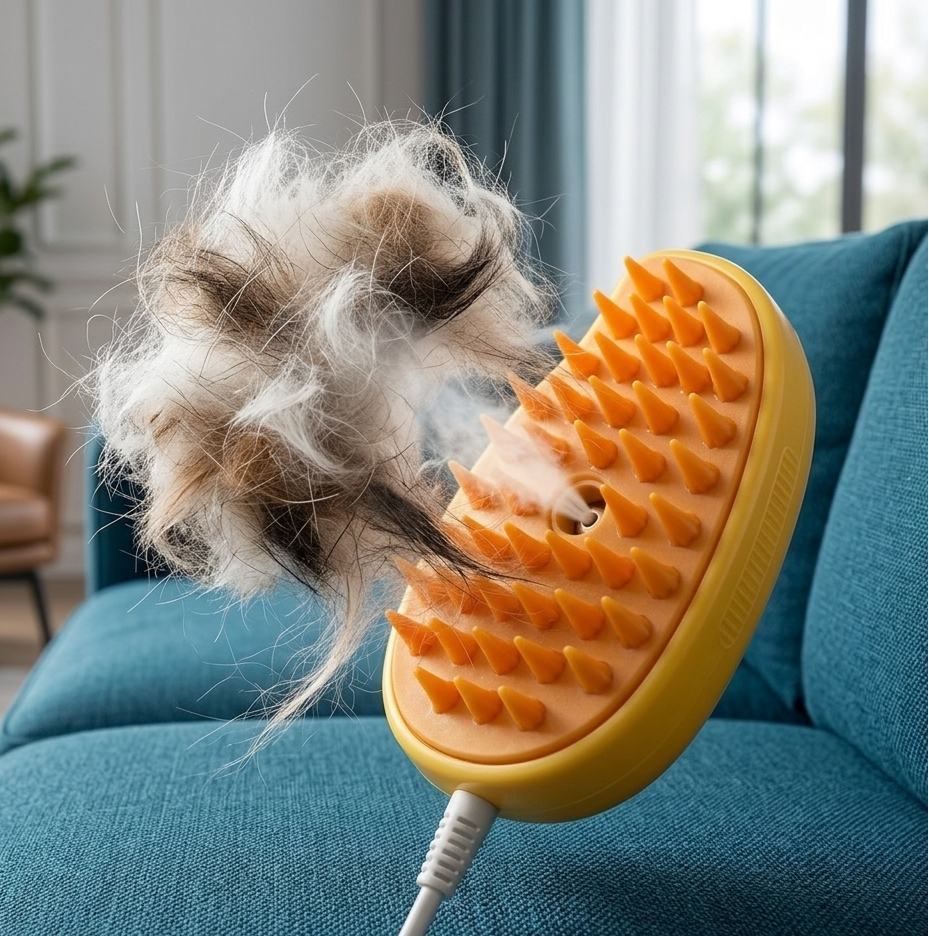 Llegó la forma inteligente de cuidar a quienes mas amas. Nuestro Cepillo de Vapor 3 en 1 utiliza tecnología de vapor FRIO para atrapar el pelo muerto al instante, mientras hidrata la piel 6y relaja a tu mascota con un masaje. Sin cables, sin tirones, solo bienestar.